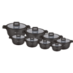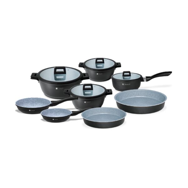 Lifetime grydesæt med 12 dele kombinerer holdbarhed og funktionalitet til alle typer madlavning. Sættet inkluderer gryder, kasserolle, stegepander og ovnfaste fade i forskellige størrelser, alle med naturlig non-stick funktion og fremstillet af trykstøbt aluminium med keramisk belægning. Gryderne og panderne passer til alle komfurtyper – også induktion – og sikrer jævn varmefordeling. Vaskes i hånden for at skåne belægningen. Tåler ikke opvaskemaskine.